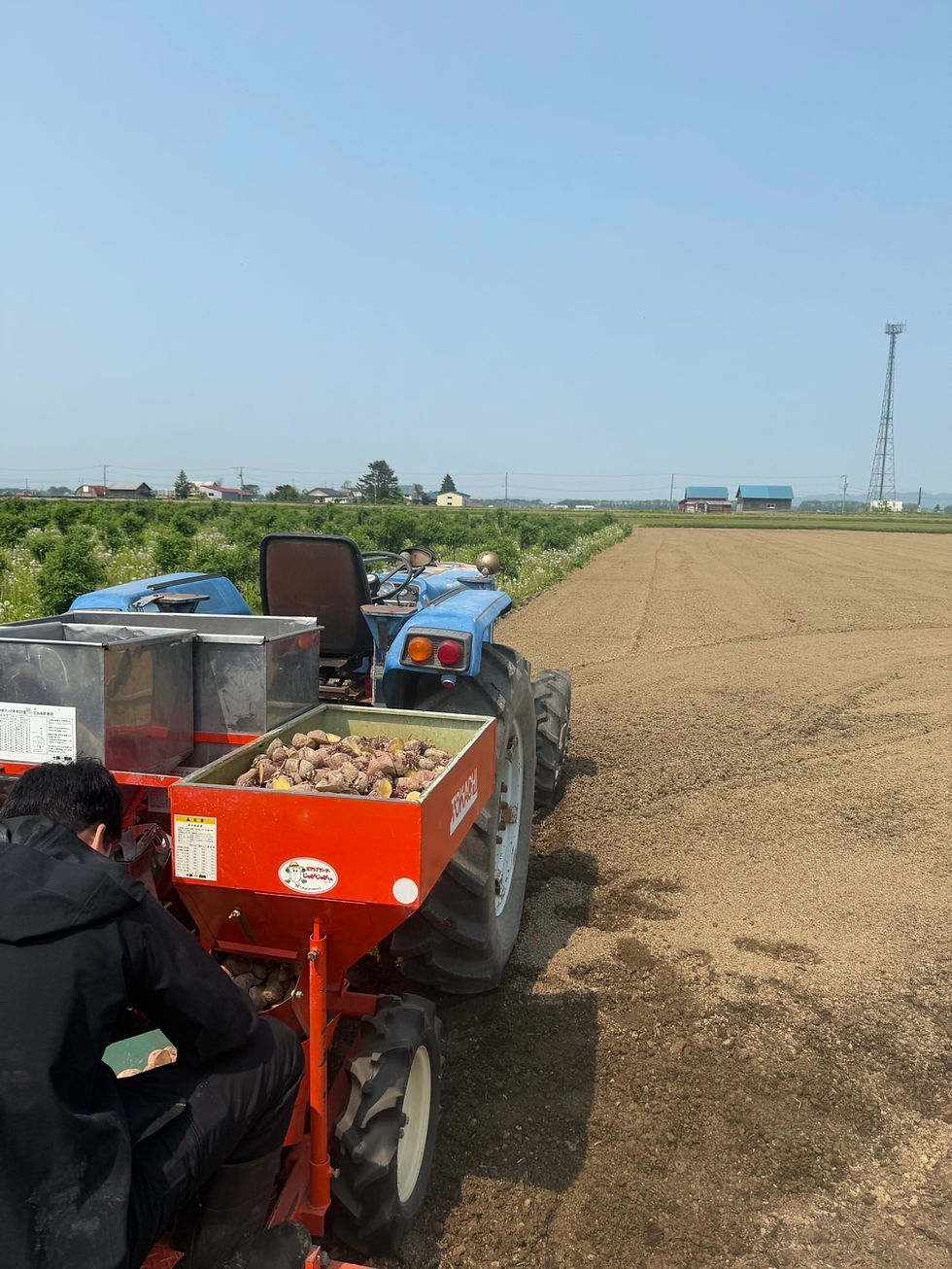 5日今日から待ちに待ったアスパラの収穫がスタートしました。北海道の寒さが長引いたため、成長が遅く例年より1週ん遅れたのスタートでした。6日は植え付け準備の為の肥料散布と畑の荒起こしです。一度畑を起こして土全体を日光に当てて乾燥消毒します。太陽の偉大さを実感します。畑には貝殻石灰など美味しいくなる為の栄養素を入れます。